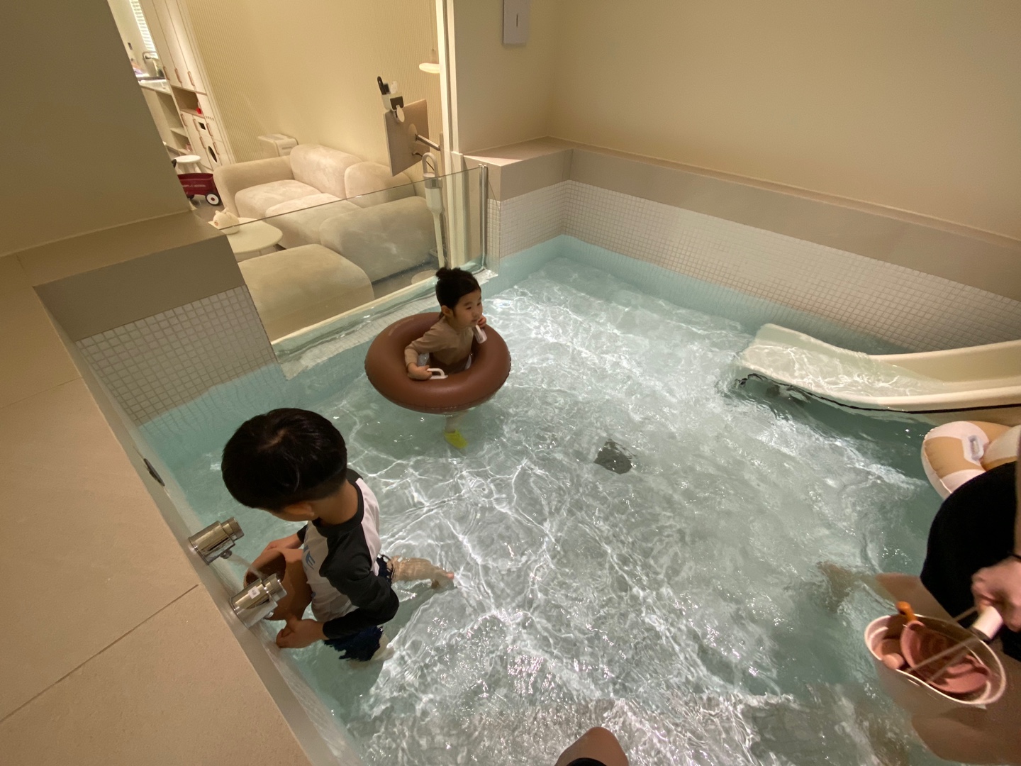 왼쪽에 풀장, 오른쪽엔 버블룸이 보이네요.