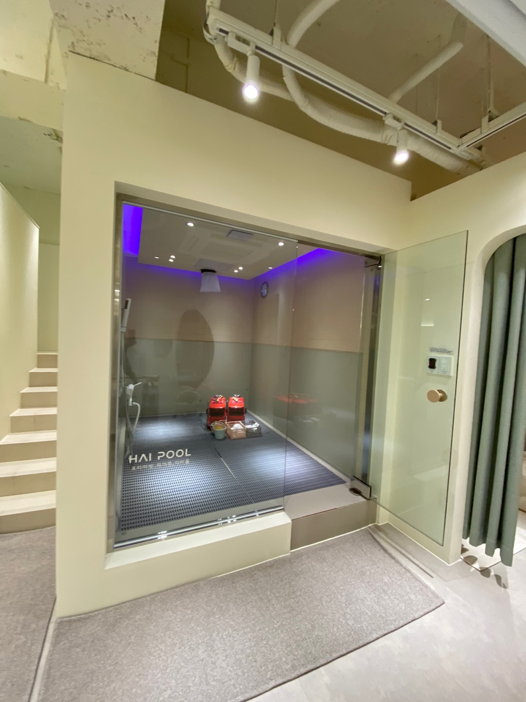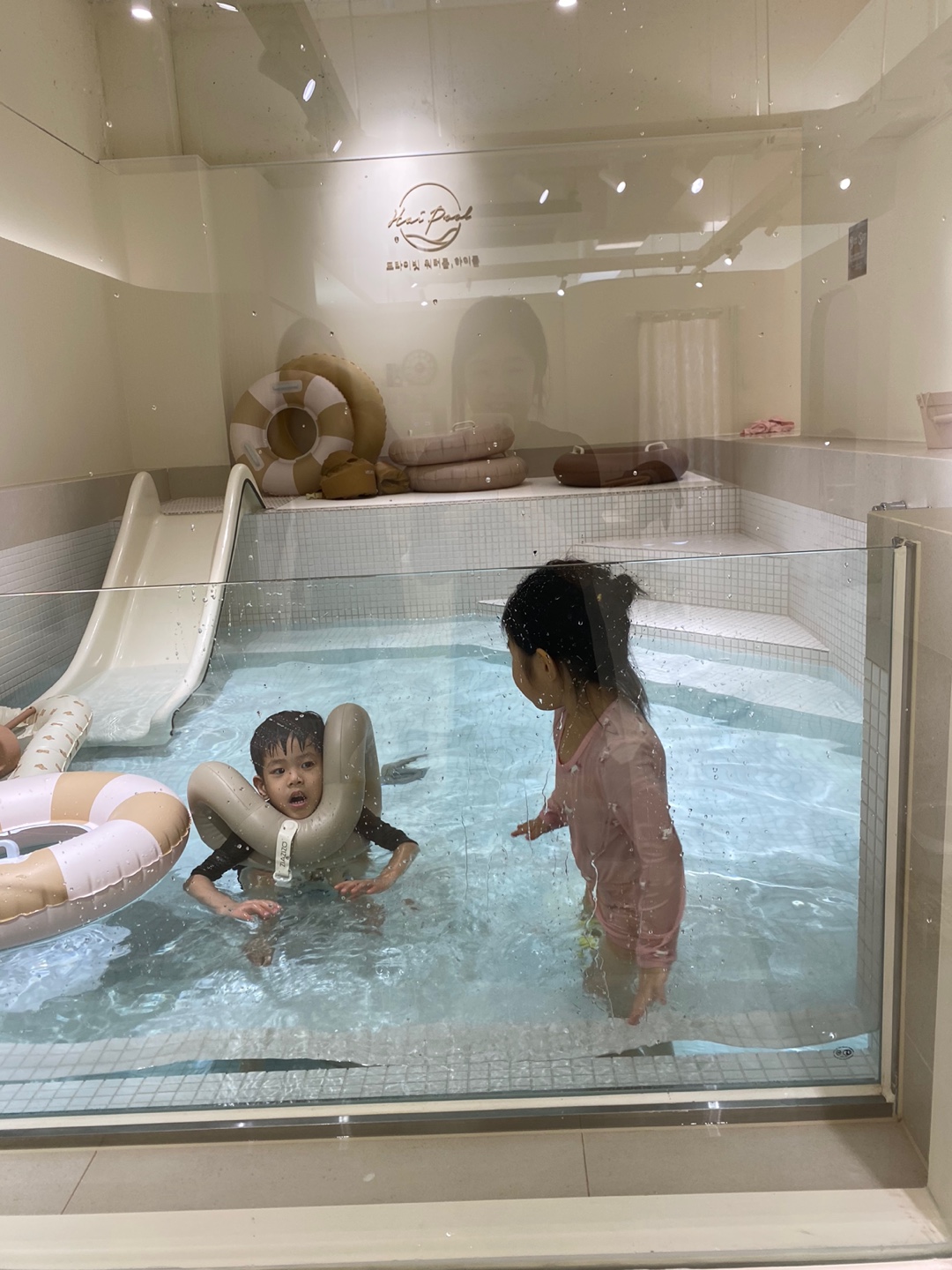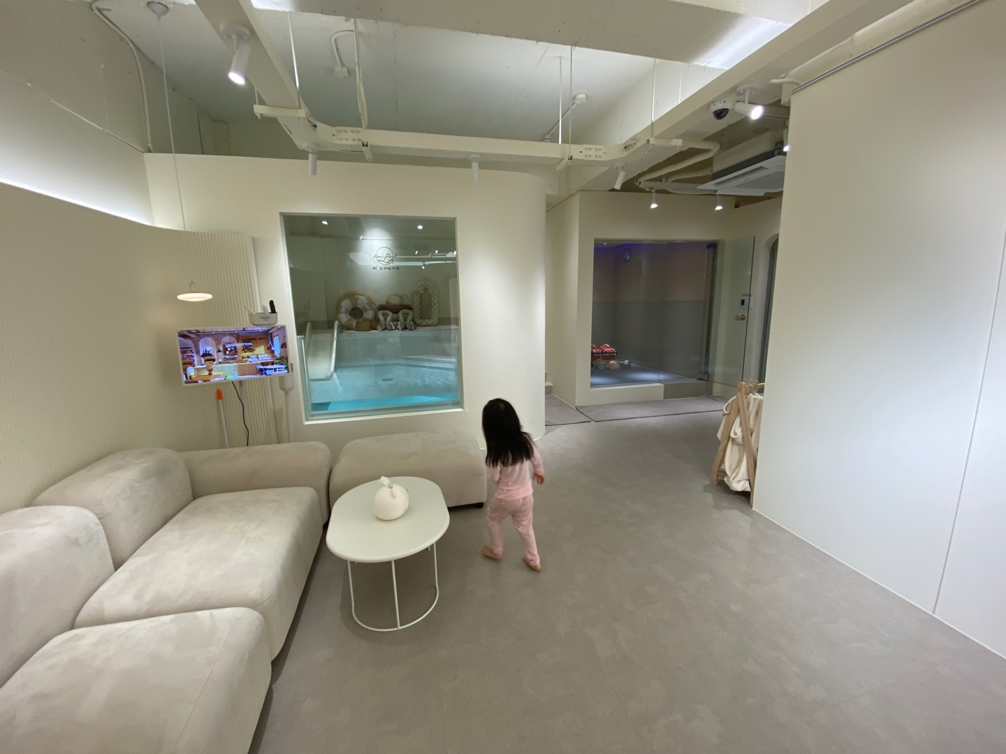 왼쪽에 풀장, 오른쪽엔 버블룸이 보이네요.
