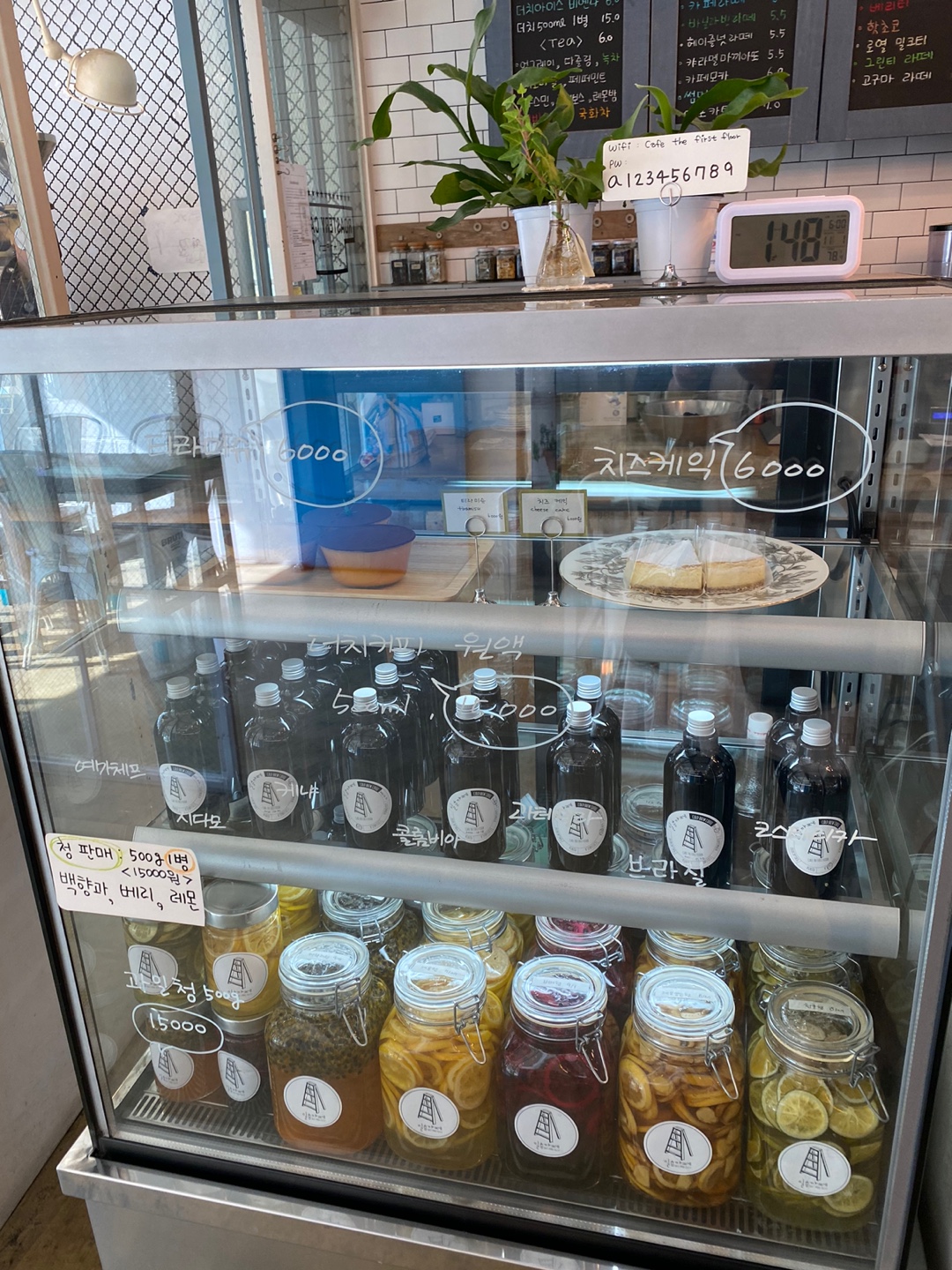 케이크와 더치커피 원액, 다양한 과일청이 판매되고 있었어요!
