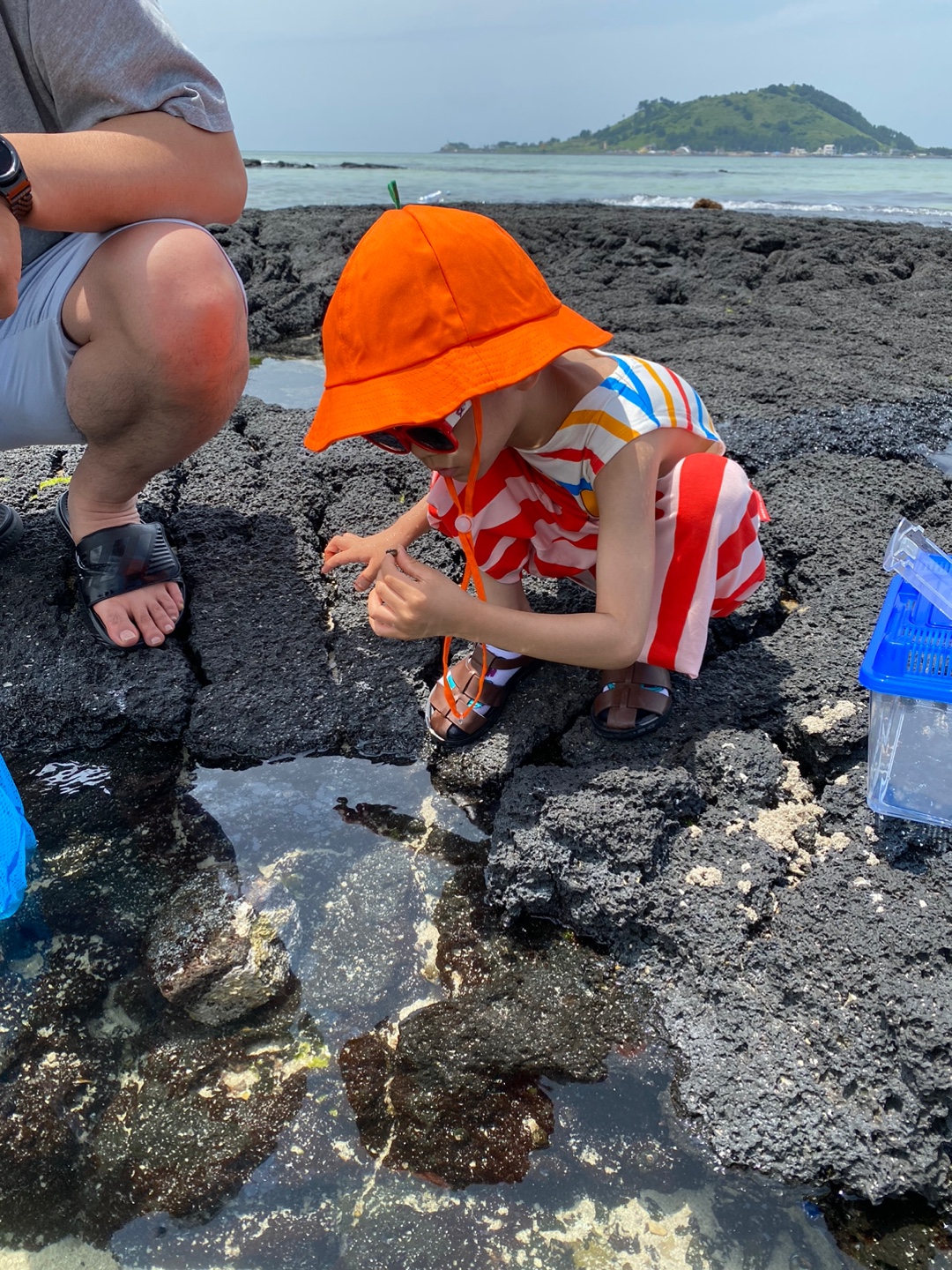 바다에서 소라게랑 물고기도 잡고~